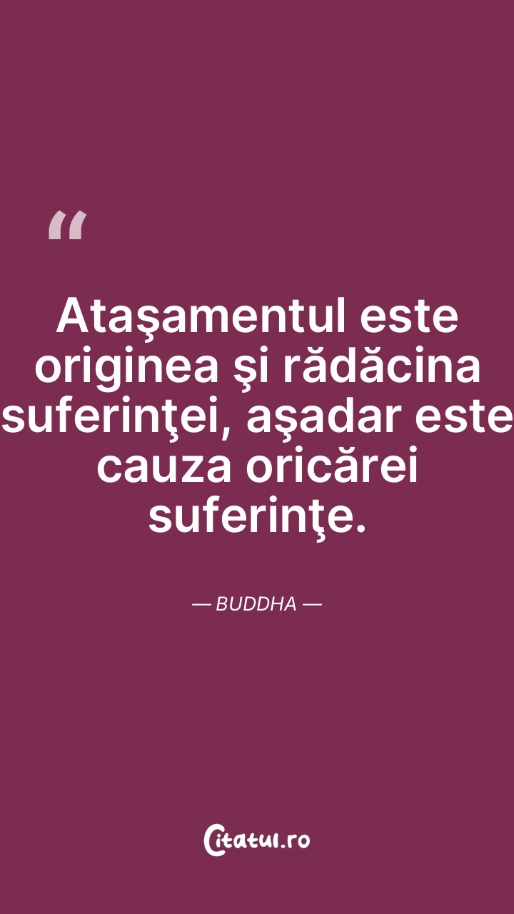 Ataşamentul este originea şi rădăcina suferinţei, aşadar este cauza oricărei suferinţe. Buddha