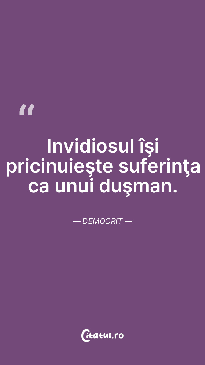 Invidiosul îşi pricinuieşte suferinţa ca unui duşman. Democrit