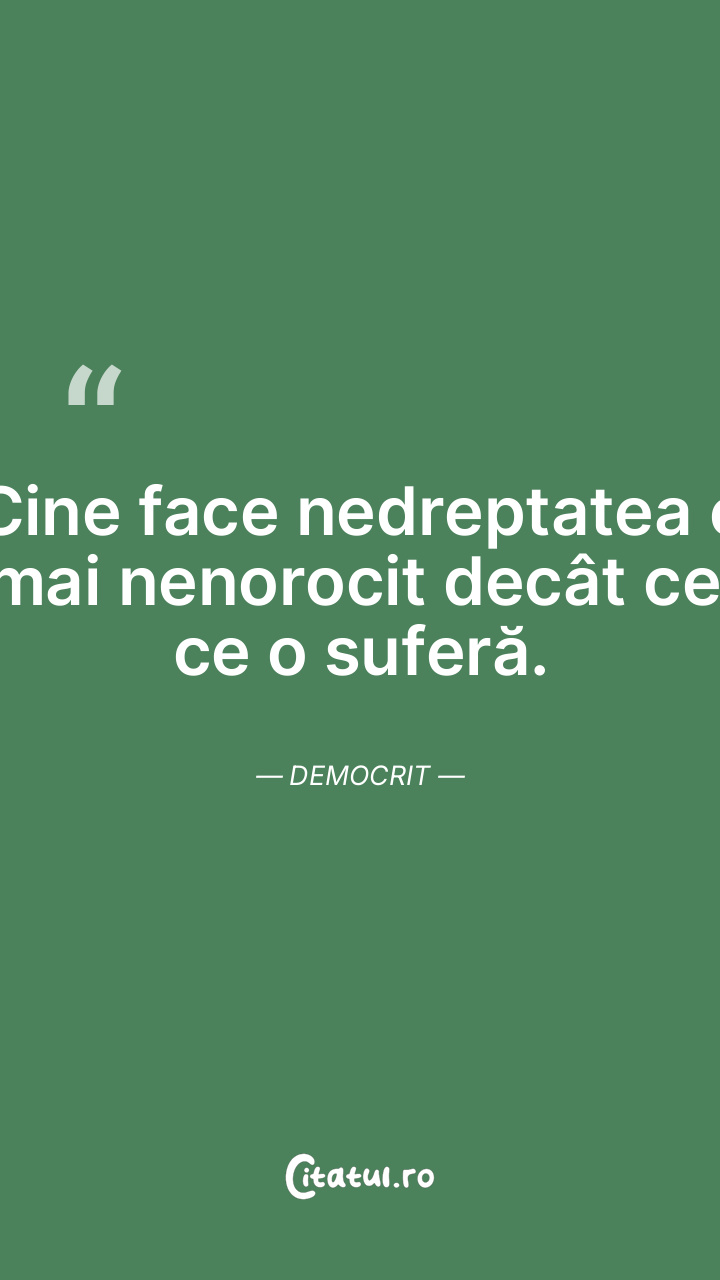 Cine face nedreptatea e mai nenorocit decât cel ce o suferă. Democrit