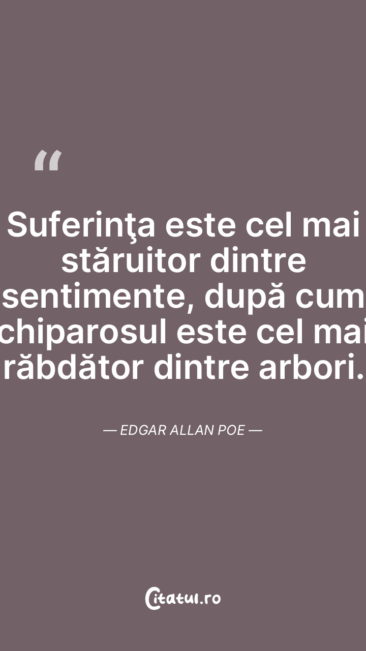 Suferinţa este cel mai stăruitor dintre sentimente, după cum chiparosul este cel mai răbdător dintre arbori. Edgar Allan Poe