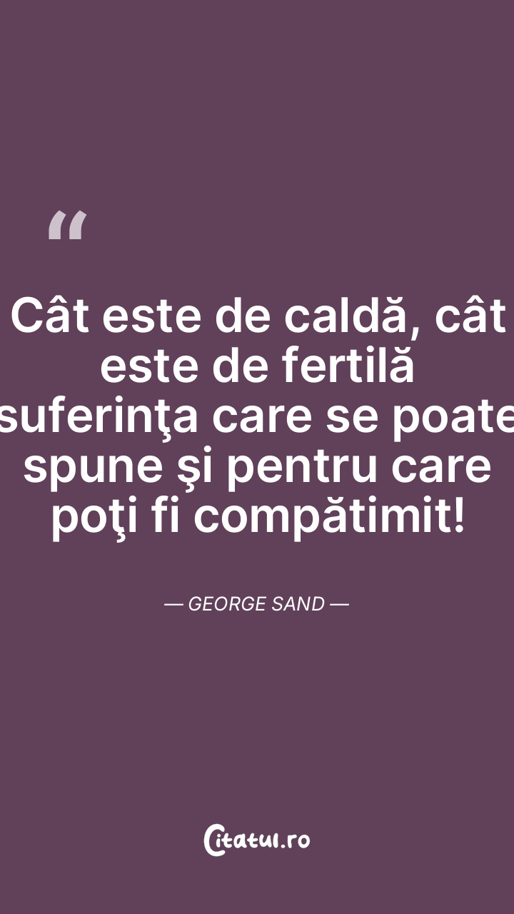Cât este de caldă, cât este de fertilă suferinţa care se poate spune şi pentru care poţi fi compătimit! George Sand
