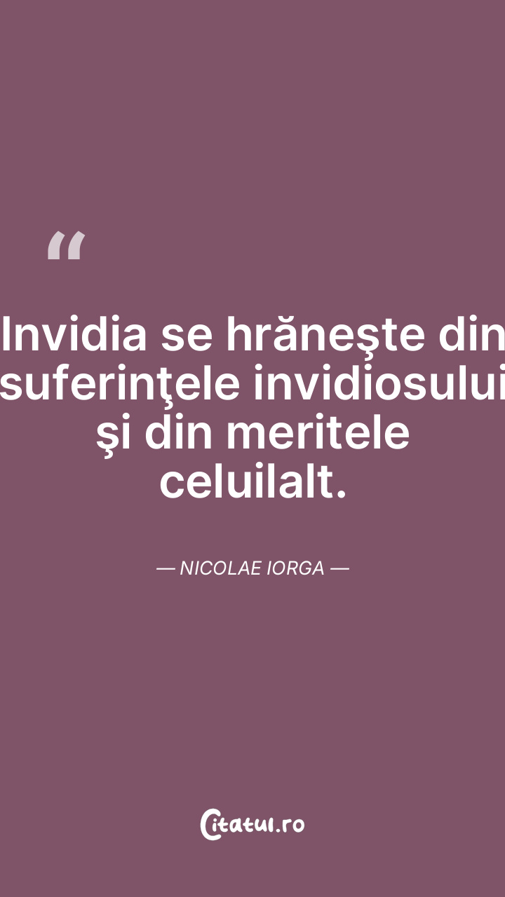 Invidia se hrăneşte din suferinţele invidiosului şi din meritele celuilalt. Nicolae Iorga