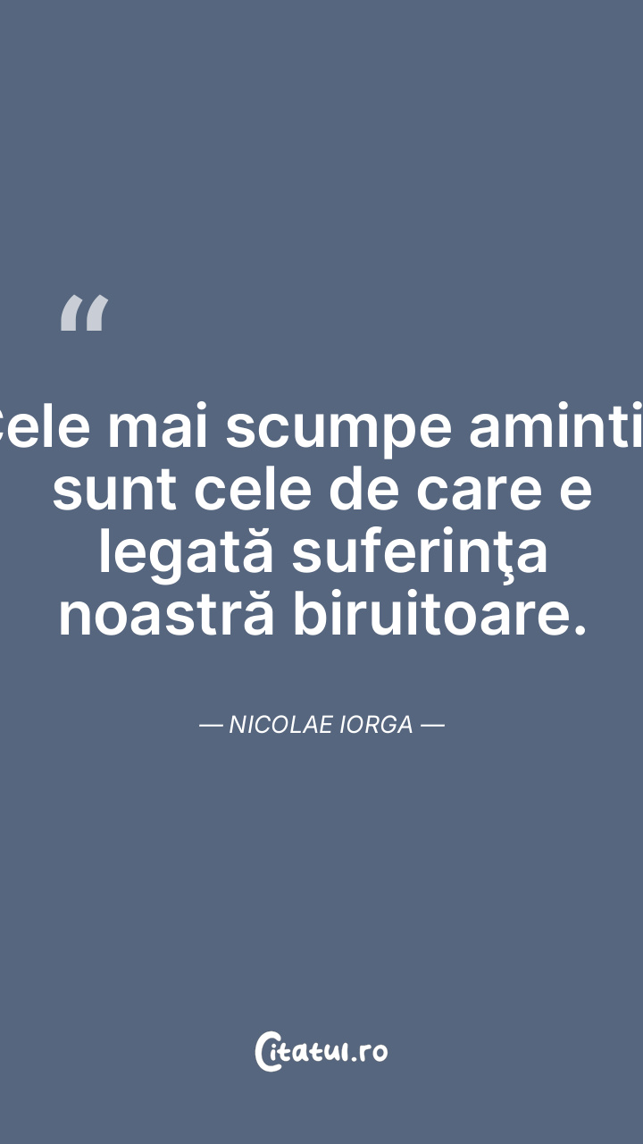 Cele mai scumpe amintiri sunt cele de care e legată suferinţa noastră biruitoare. Nicolae Iorga