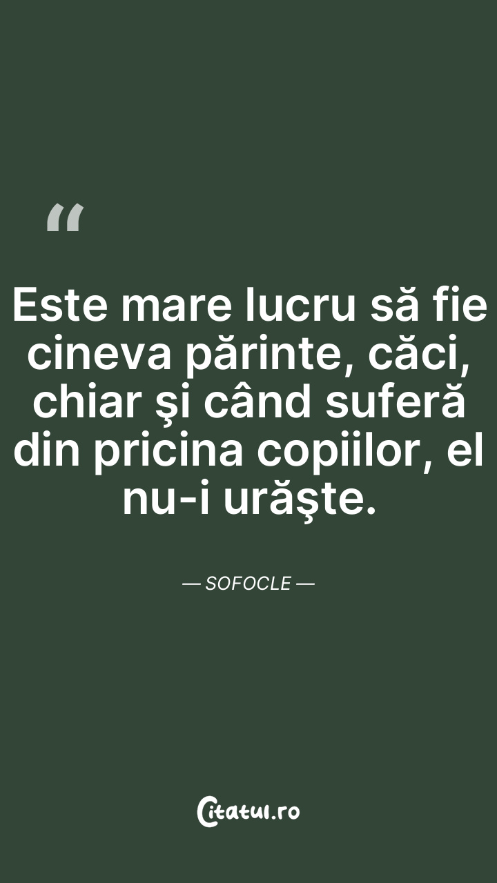 Este mare lucru să fie cineva părinte, căci, chiar şi când suferă din pricina copiilor, el nu-i urăşte. Sofocle