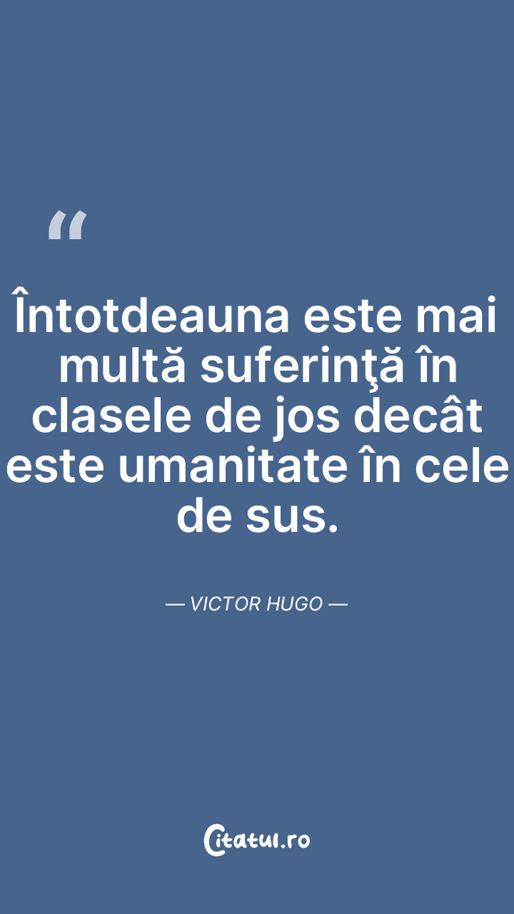Întotdeauna este mai multă suferinţă în clasele de jos decât este umanitate în cele de sus. Victor Hugo