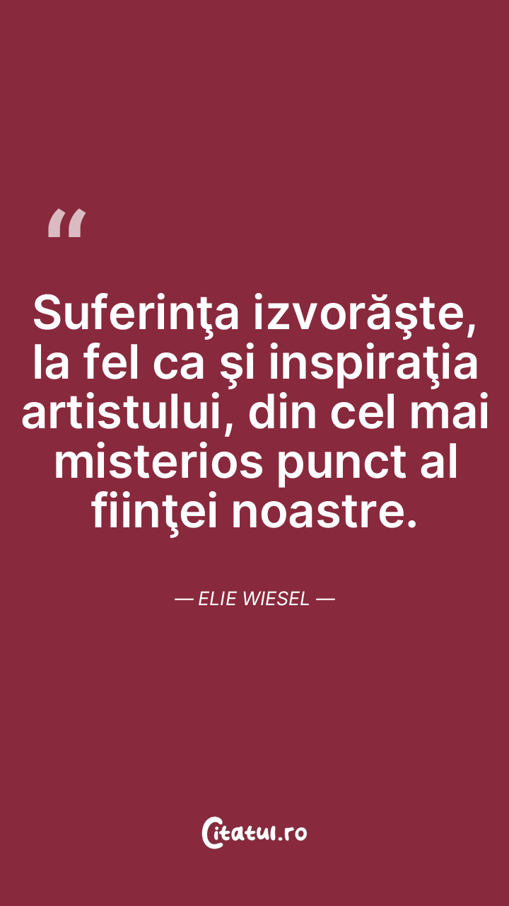 Suferinţa izvorăşte, la fel ca şi inspiraţia artistului, din cel mai misterios punct al fiinţei noastre. Elie Wiesel