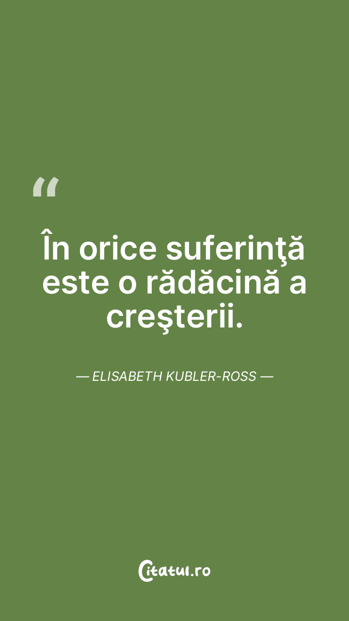 În orice suferinţă este o rădăcină a creşterii. Elisabeth Kubler-Ross