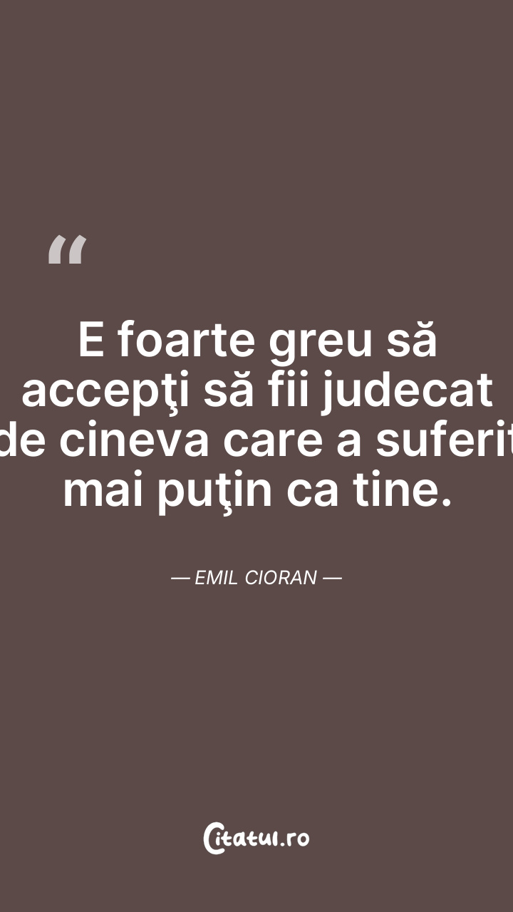 E foarte greu să accepţi să fii judecat de cineva care a suferit mai puţin ca tine. Emil Cioran