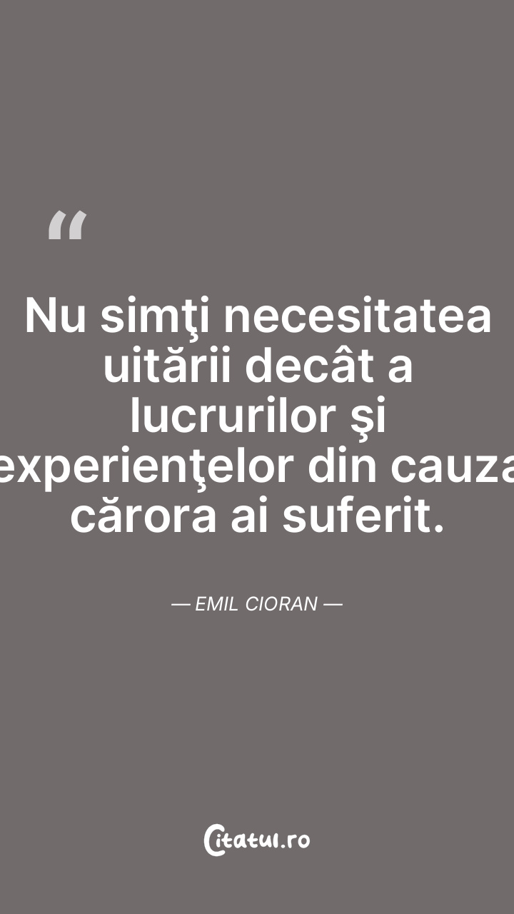 Nu simţi necesitatea uitării decât a lucrurilor şi experienţelor din cauza cărora ai suferit. Emil Cioran