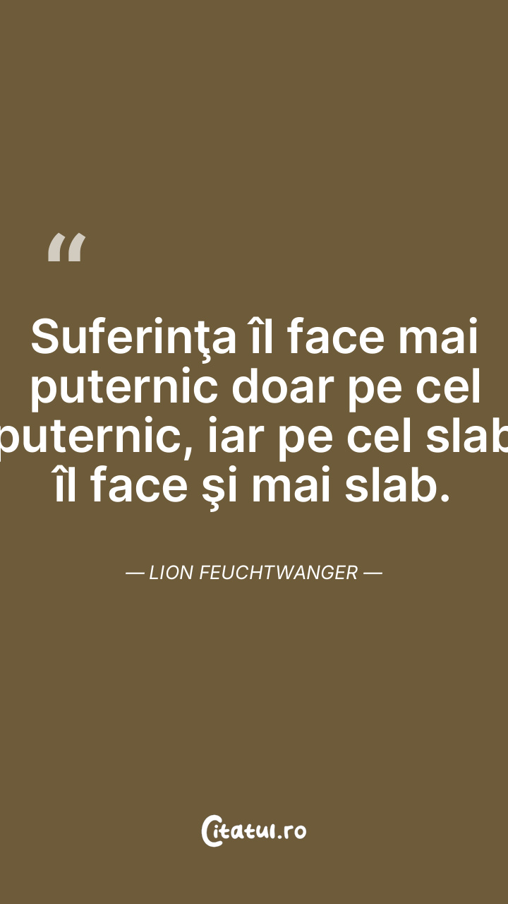 Suferinţa îl face mai puternic doar pe cel puternic, iar pe cel slab îl face şi mai slab. Lion Feuchtwanger
