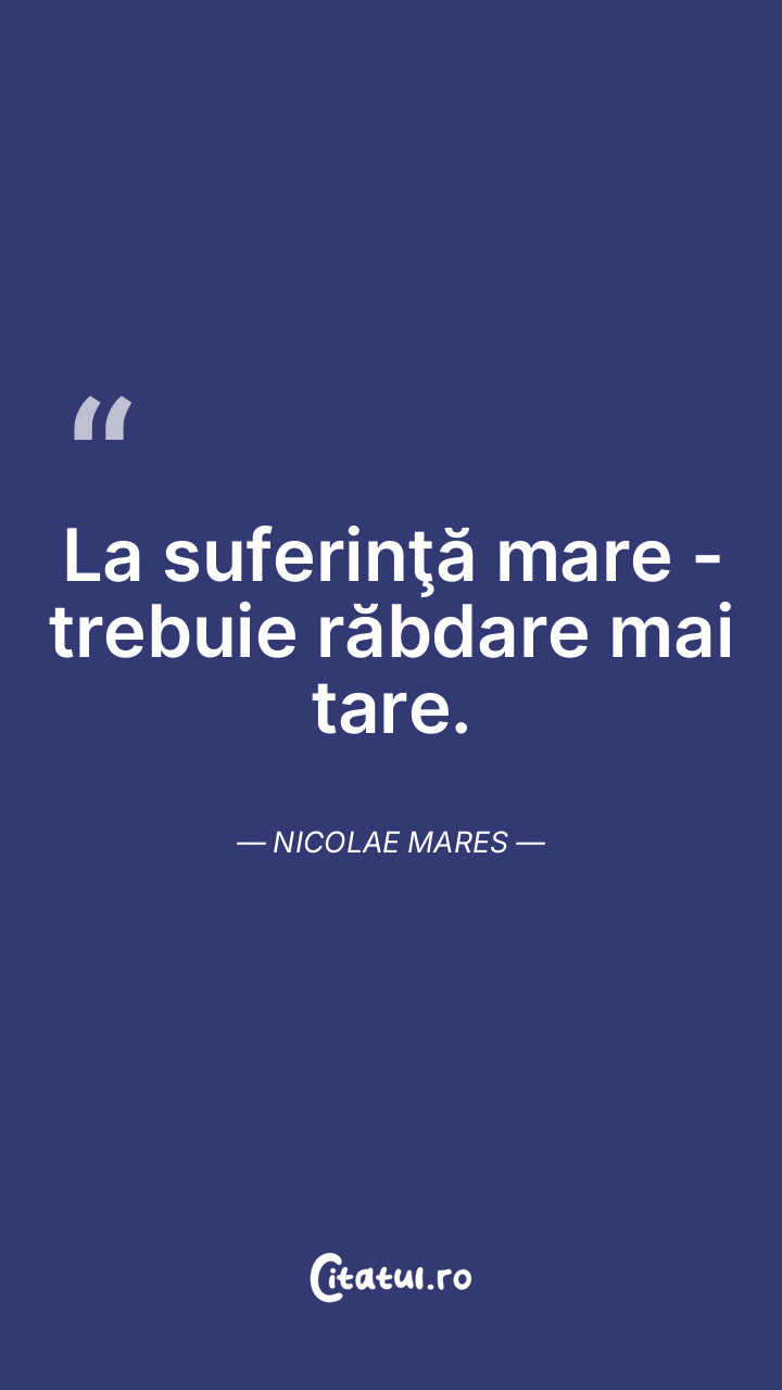 La suferinţă mare - trebuie răbdare mai tare. Nicolae Mares