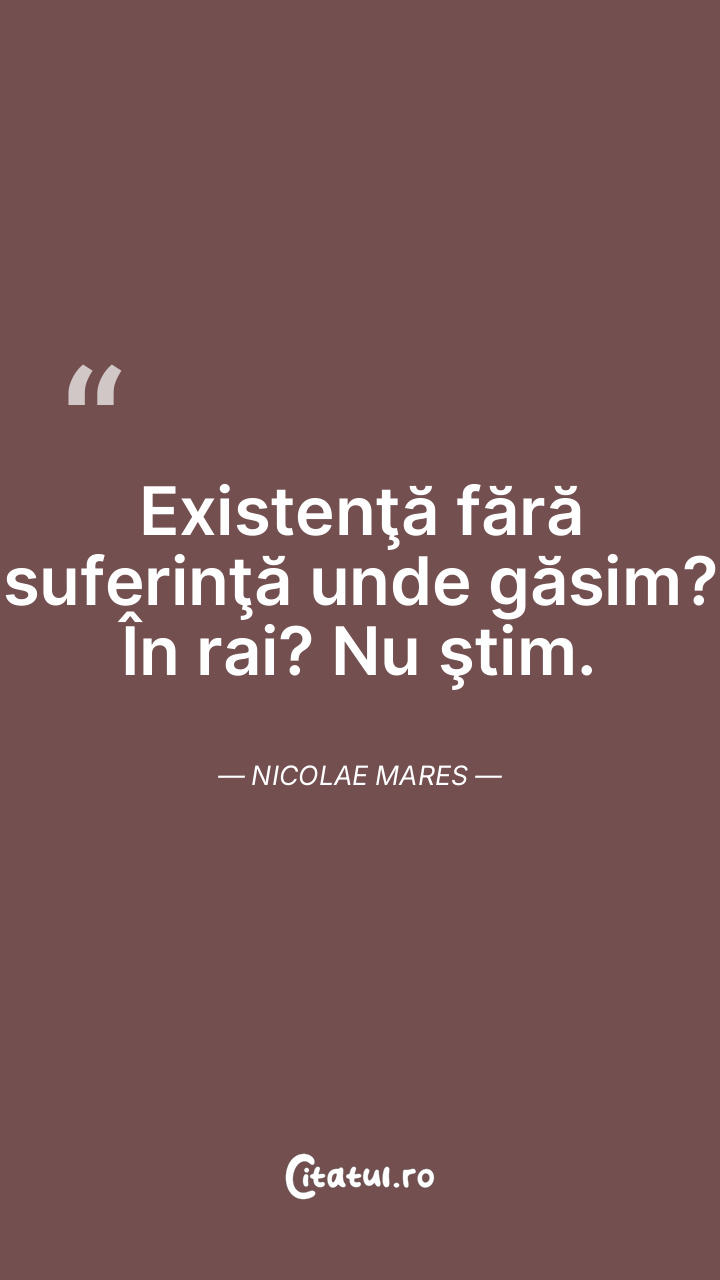 Existenţă fără suferinţă unde găsim? În rai? Nu ştim. Nicolae Mares