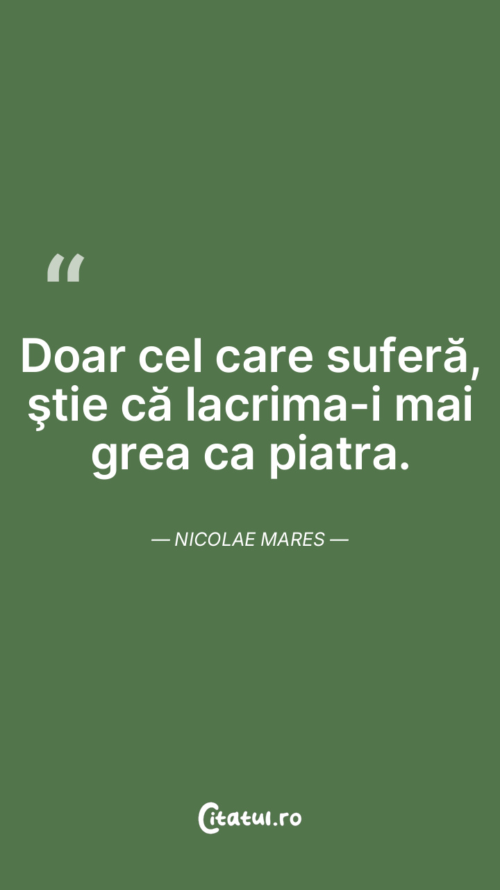 Doar cel care suferă, ştie că lacrima-i mai grea ca piatra. Nicolae Mares