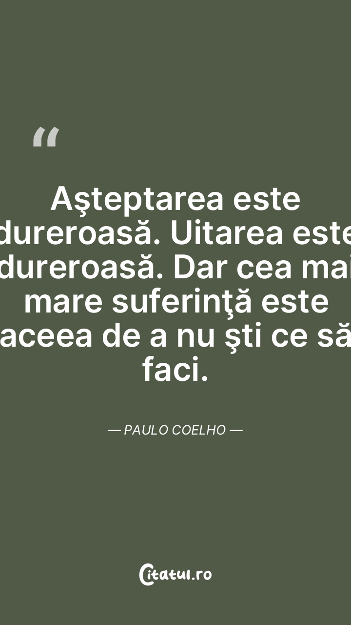 Aşteptarea este dureroasă. Uitarea este dureroasă. Dar cea mai mare suferinţă este aceea de a nu şti ce să faci. Paulo Coelho