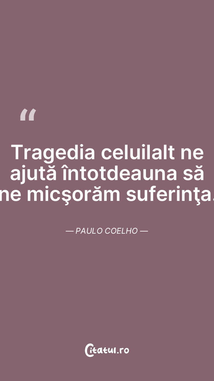 Tragedia celuilalt ne ajută întotdeauna să ne micşorăm suferinţa. Paulo Coelho