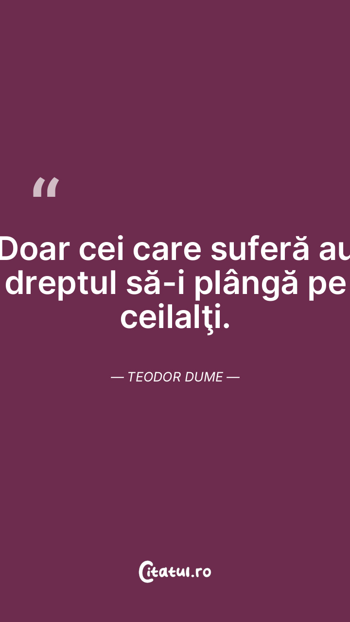 Doar cei care suferă au dreptul să-i plângă pe ceilalţi. Teodor Dume