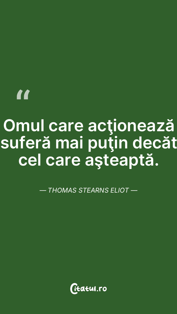 Omul care acţionează suferă mai puţin decăt cel care aşteaptă. Thomas Stearns Eliot