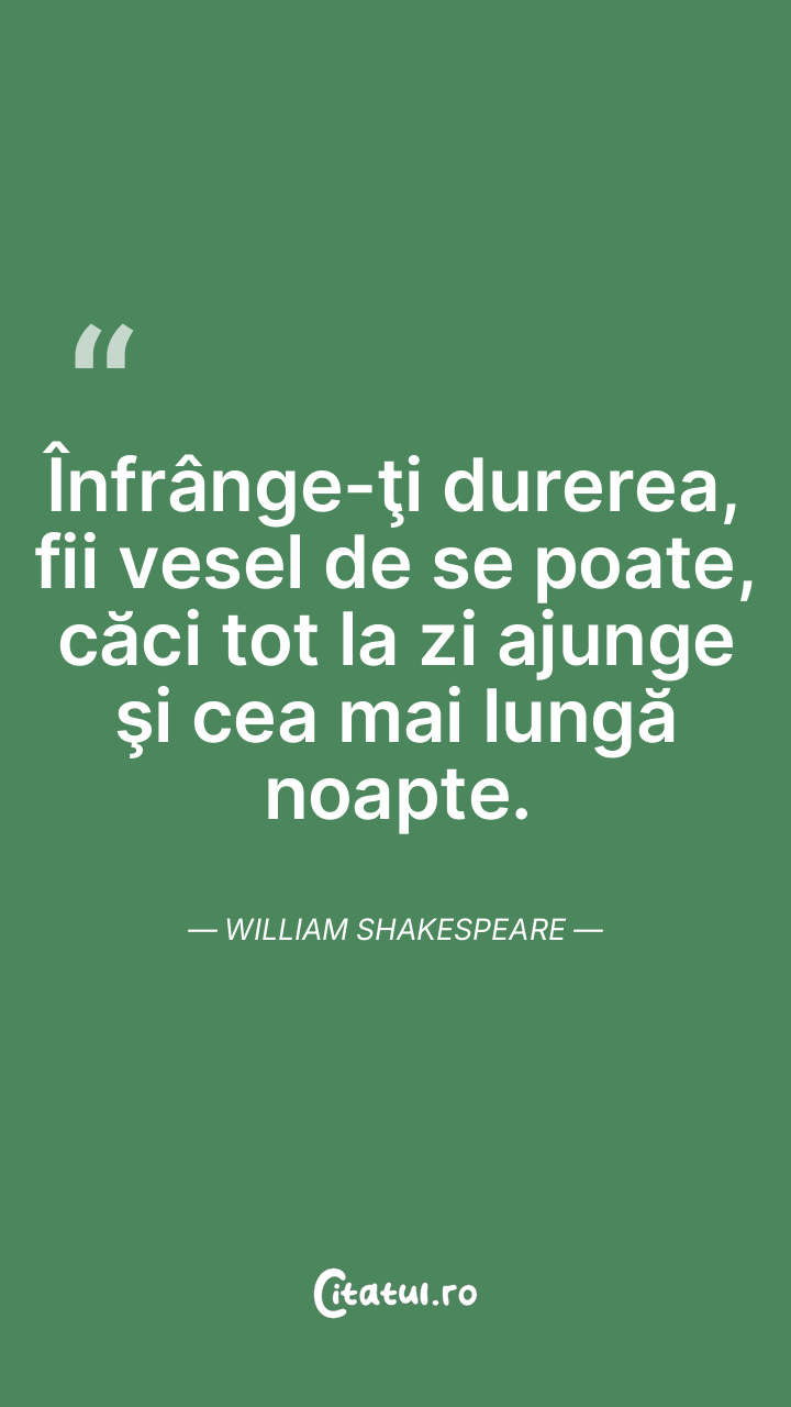 Înfrânge-ţi durerea, fii vesel de se poate, căci tot la zi ajunge şi cea mai lungă noapte. William Shakespeare