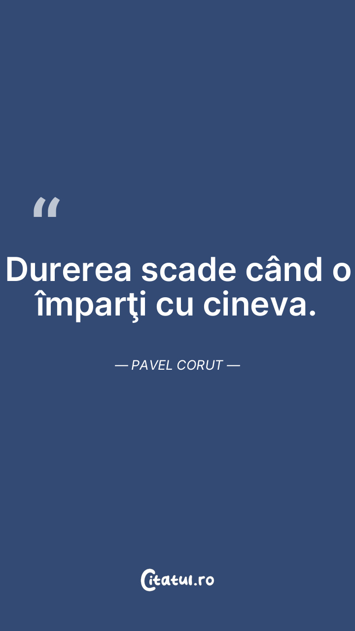 Durerea scade când o împarţi cu cineva. Pavel Coru...