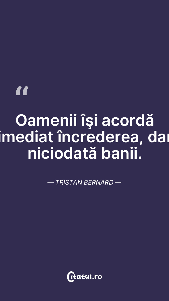 Oamenii îşi acordă imediat încrederea, dar niciodată banii. Tristan Bernard
