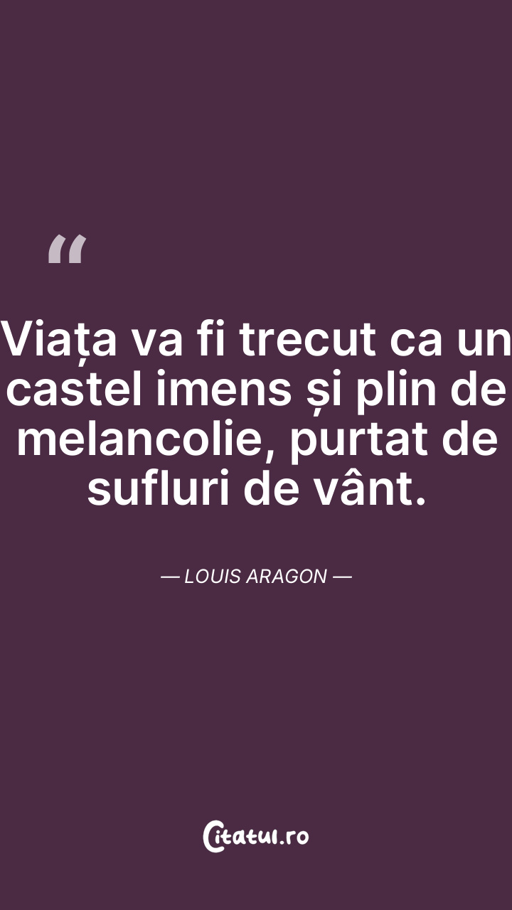 Viața va fi trecut ca un castel imens și plin de melancolie, purtat de sufluri de vânt. Louis Aragon
