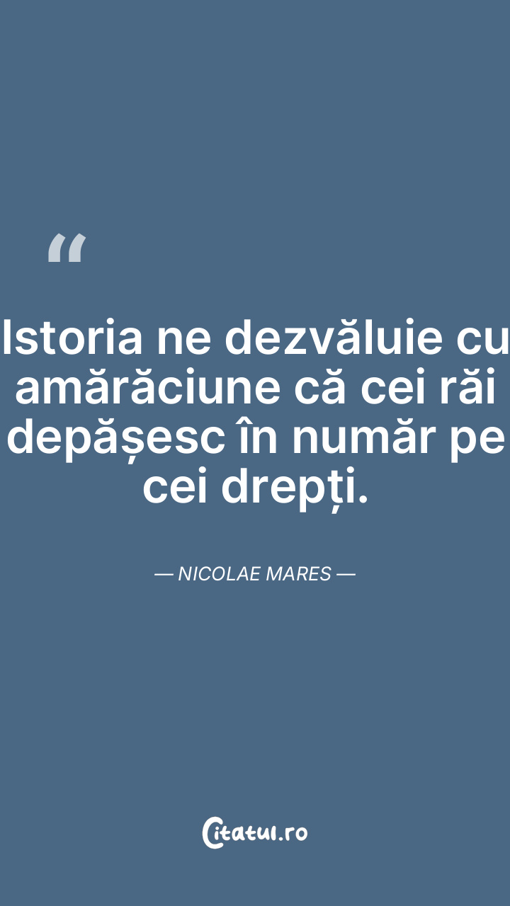 Istoria ne dezvăluie cu amărăciune că cei răi depășesc în număr pe cei drepți. Nicolae Mares