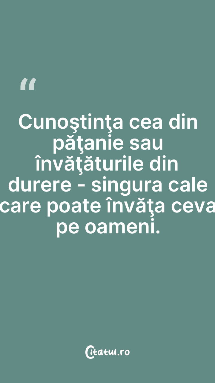 Cunoştinţa cea din păţanie sau învăţăturile din durere - singura cale care poate învăţa ceva pe oameni.