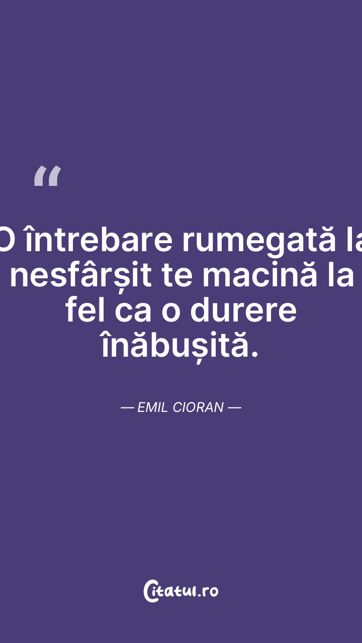 O întrebare rumegată la nesfârșit te macină la fel ca o durere înăbușită. Emil Cioran