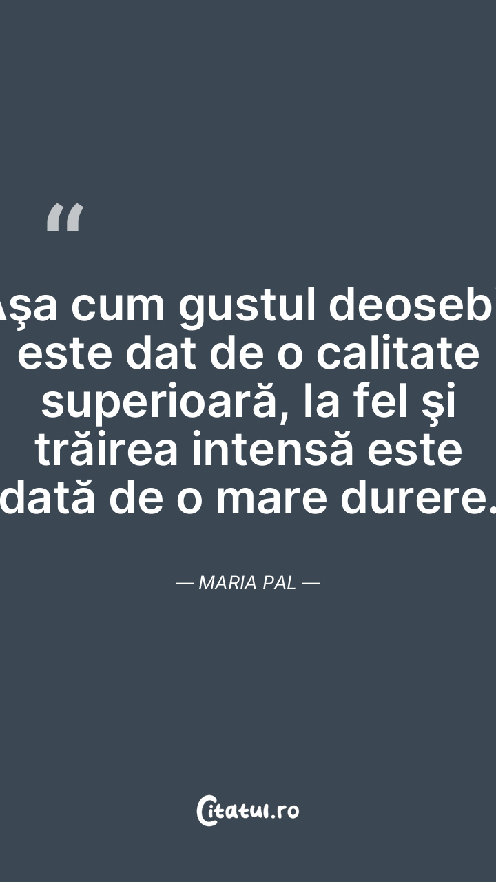 Aşa cum gustul deosebit este dat de o calitate superioară, la fel şi trăirea intensă este dată de o mare durere. Maria Pal