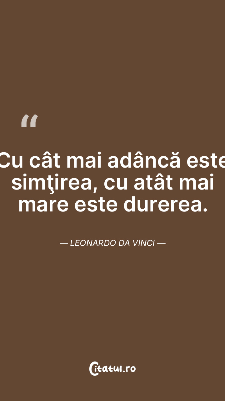 Cu cât mai adâncă este simţirea, cu atât mai mare este durerea. Leonardo da Vinci