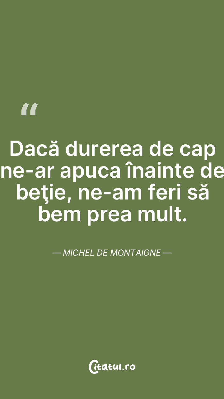Dacă durerea de cap ne-ar apuca înainte de beţie, ne-am feri să bem prea mult. Michel de Montaigne