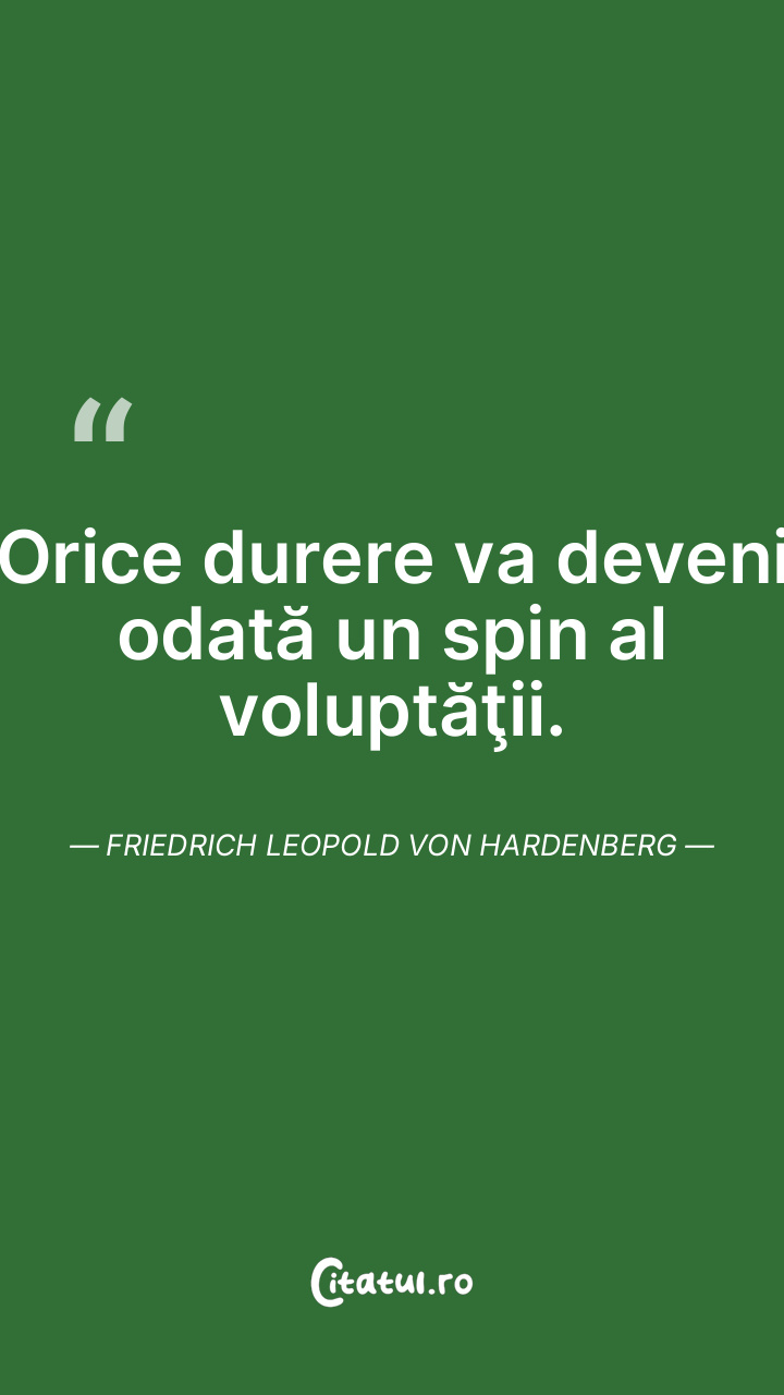 Orice durere va deveni odată un spin al voluptăţii. Friedrich Leopold Von Hardenberg