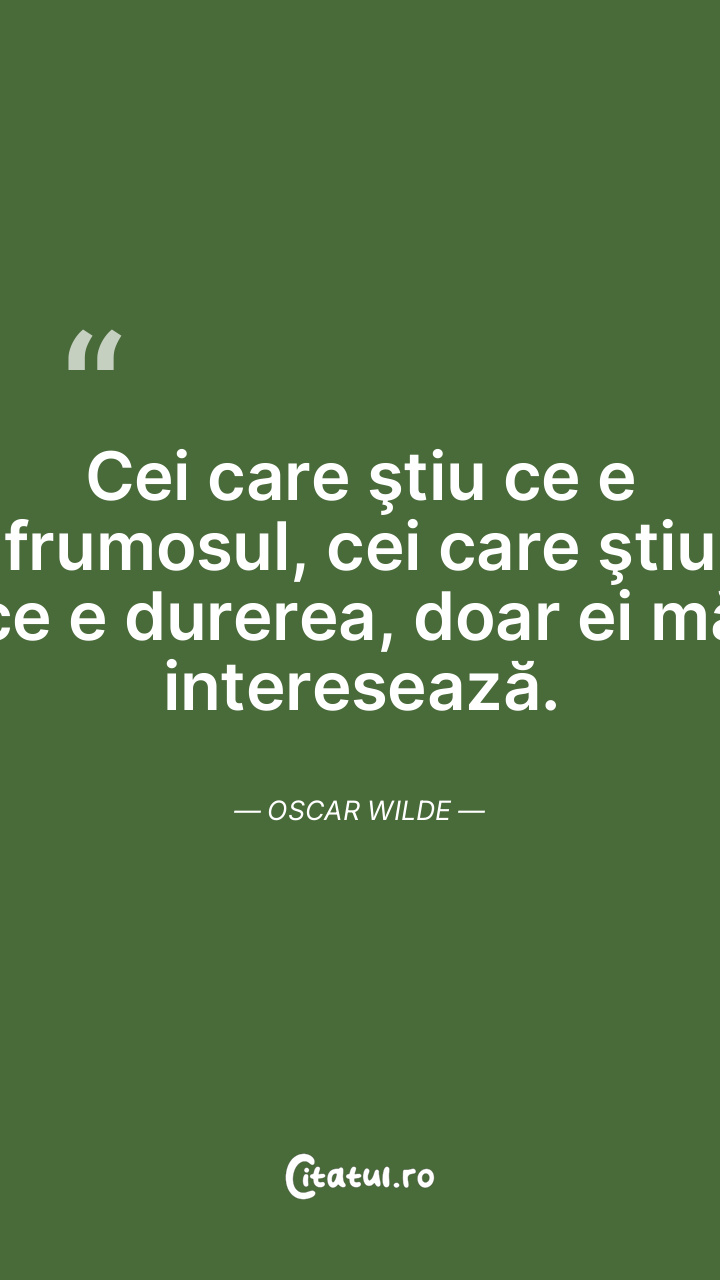 Cei care ştiu ce e frumosul, cei care ştiu ce e durerea, doar ei mă interesează. Oscar Wilde