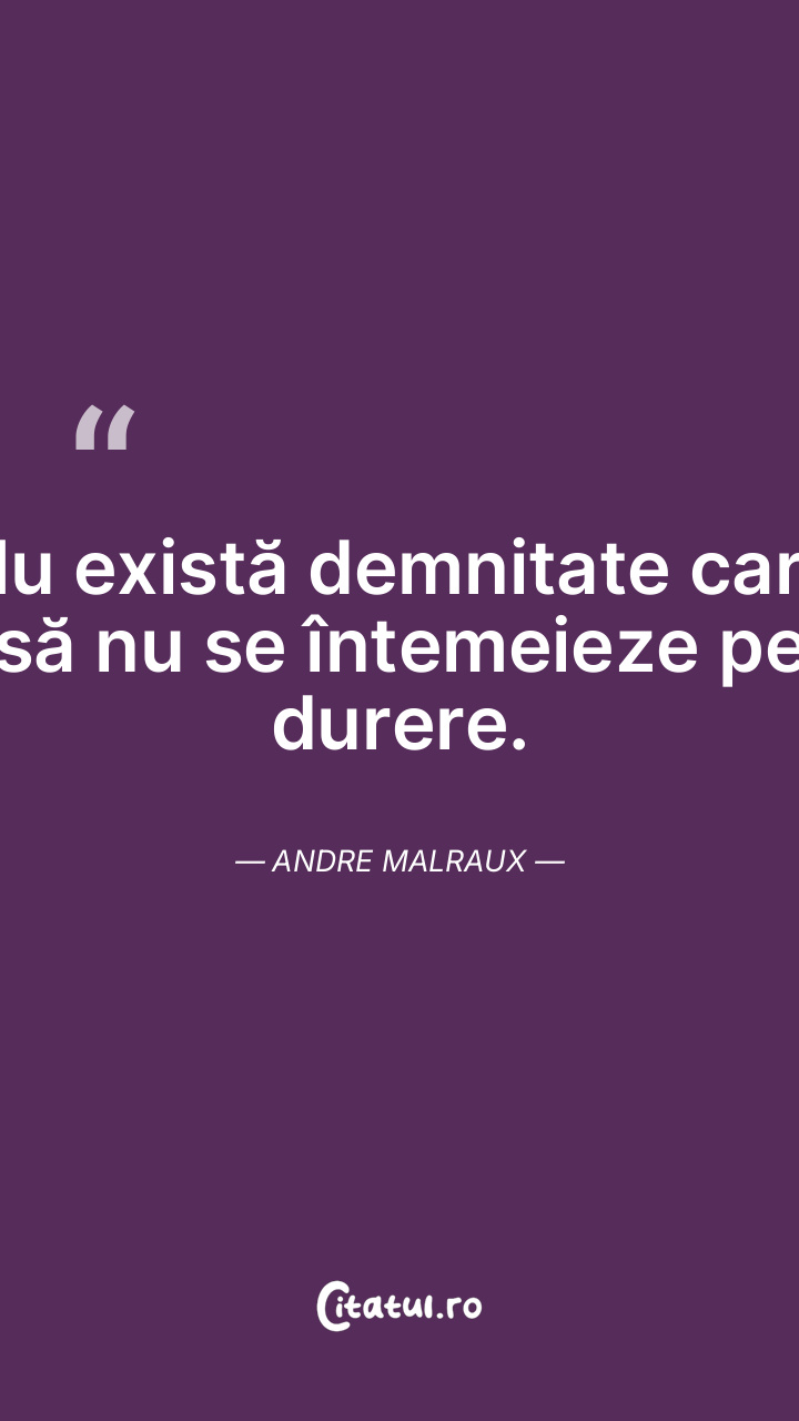 Nu există demnitate care să nu se întemeieze pe durere. Andre Malraux
