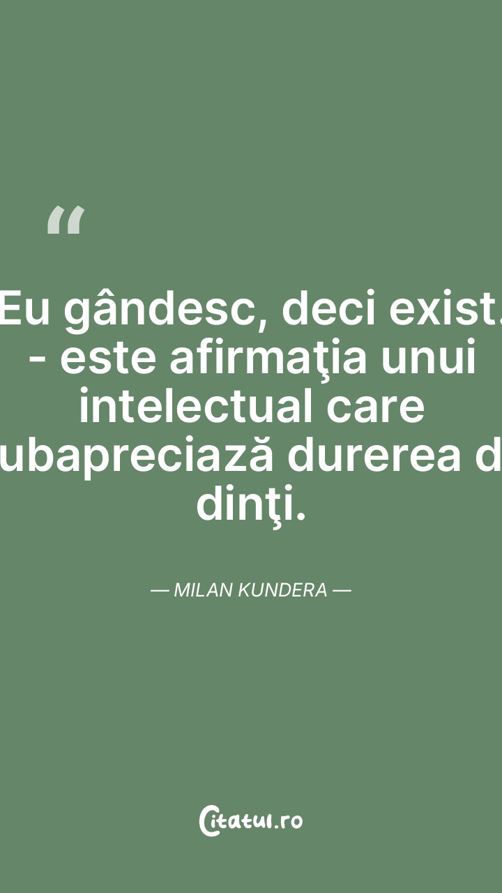 Eu gândesc, deci exist. - este afirmaţia unui intelectual care subapreciază durerea de dinţi. Milan Kundera