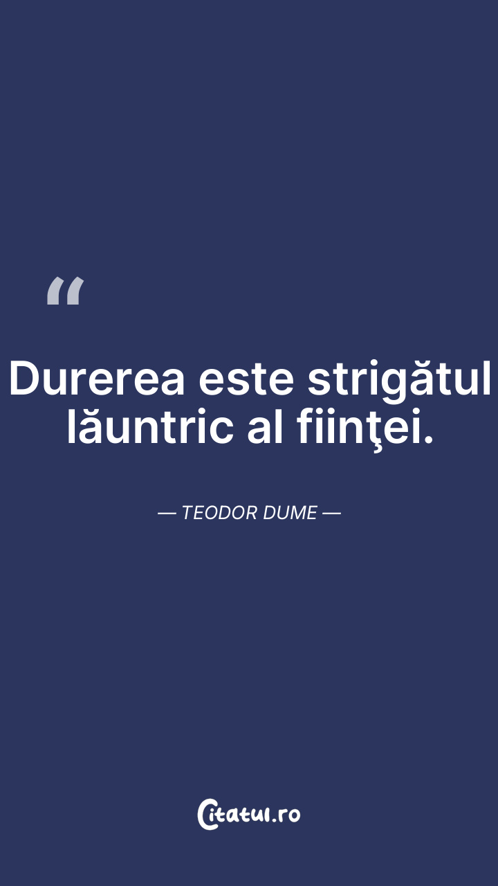 Durerea este strigătul lăuntric al fiinţei. Teodor Dume