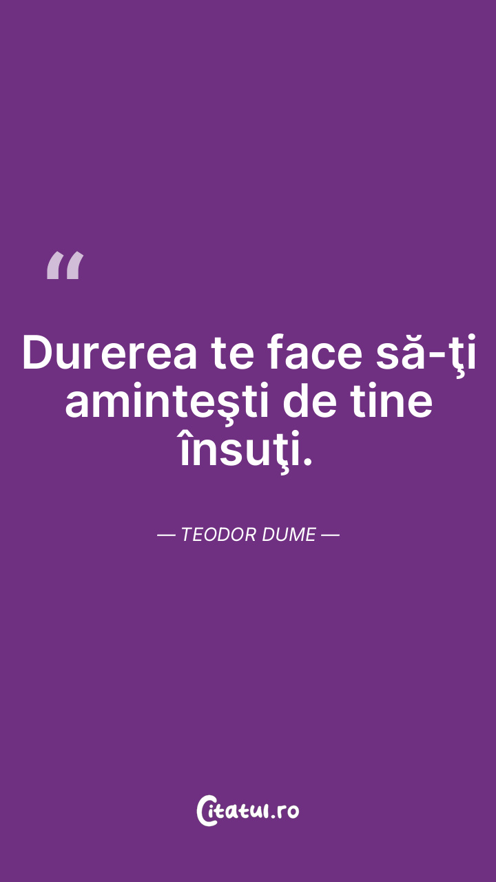 Durerea te face să-ţi aminteşti de tine însuţi. Teodor Dume