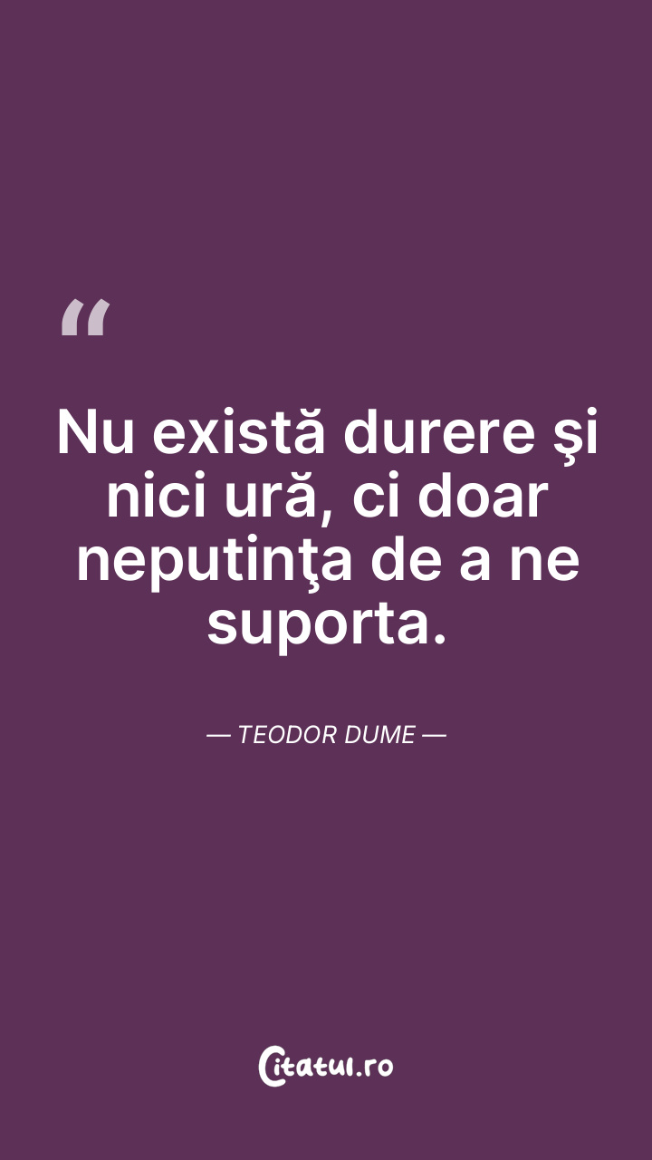 Nu există durere şi nici ură, ci doar neputinţa de a ne suporta. Teodor Dume