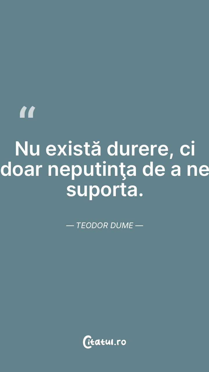 Nu există durere, ci doar neputinţa de a ne suporta. Teodor Dume