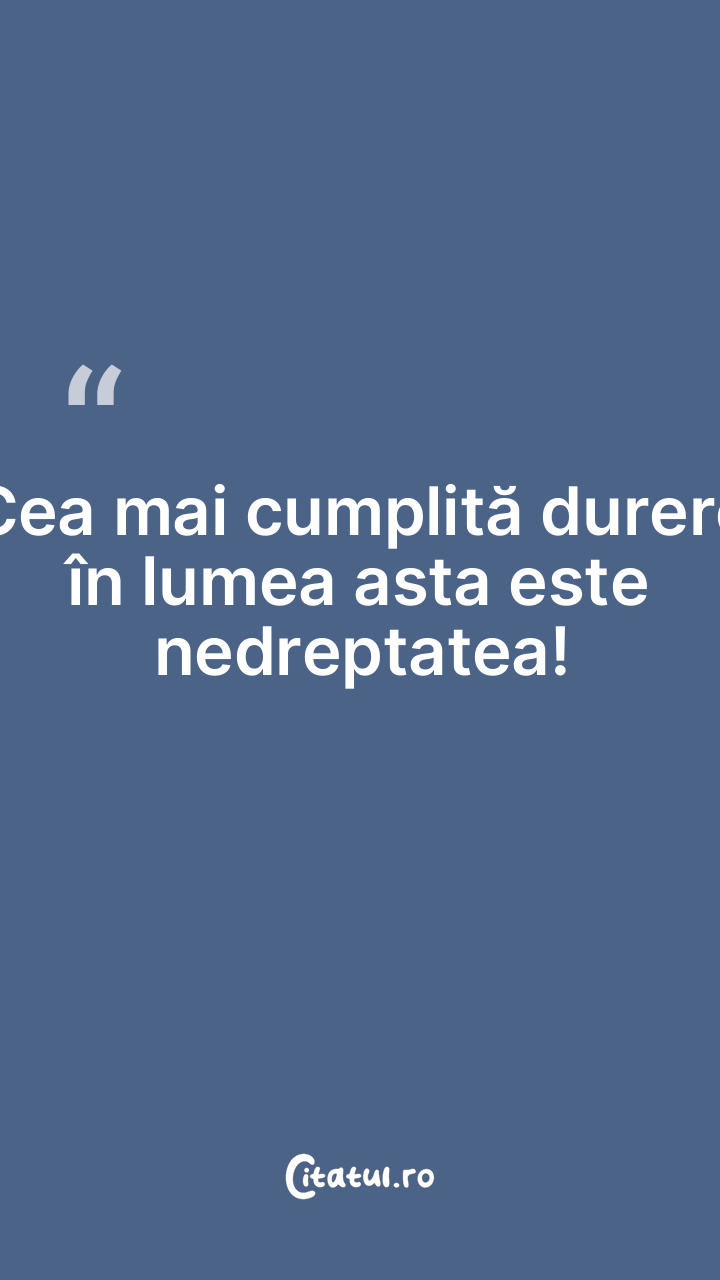 Cea mai cumplită durere în lumea asta este nedreptatea!