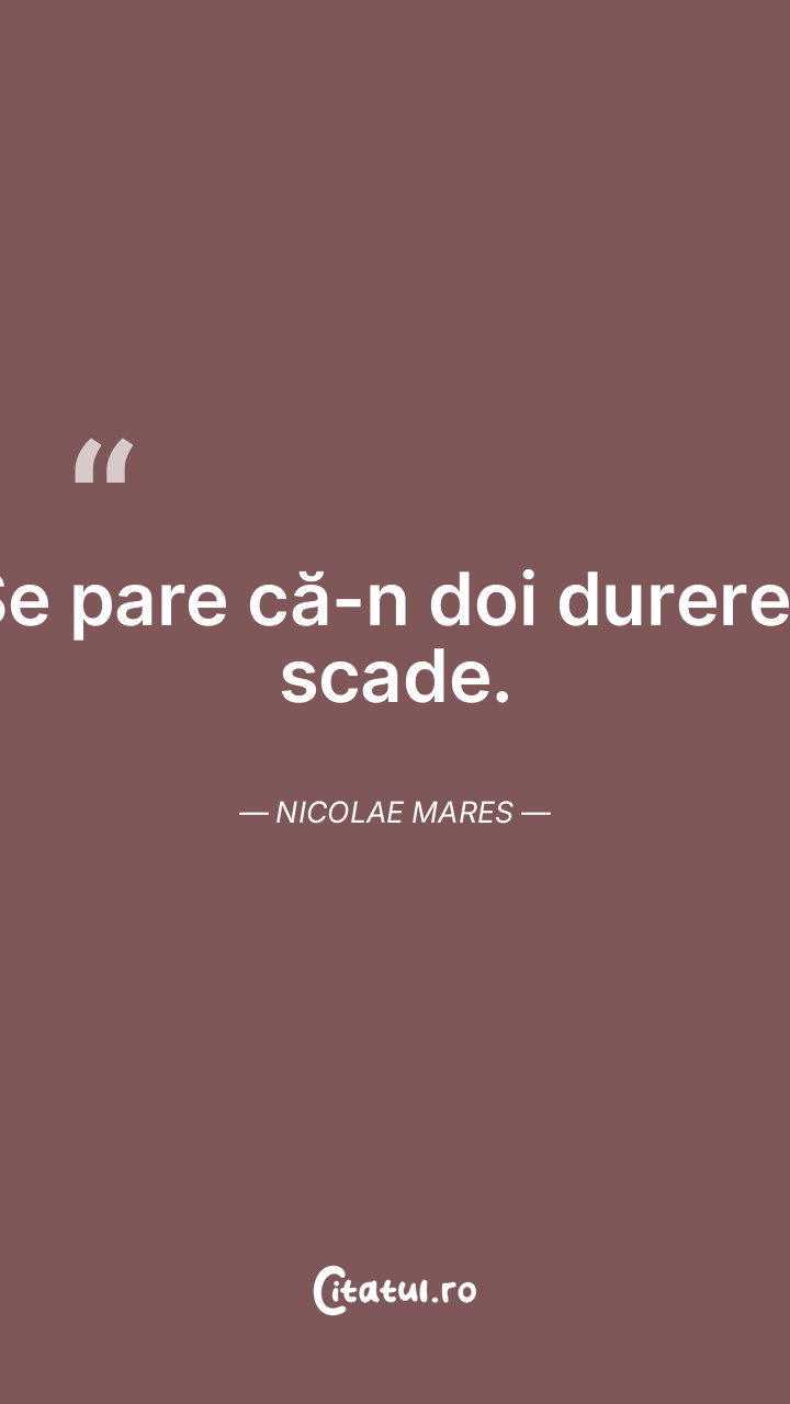 Se pare că-n doi durerea scade. Nicolae Mares ...