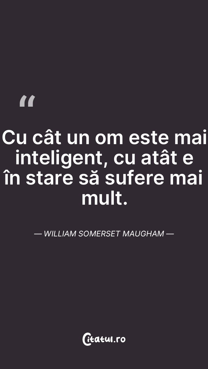 Cu cât un om este mai inteligent, cu atât e în stare să sufere mai mult. William Somerset Maugham