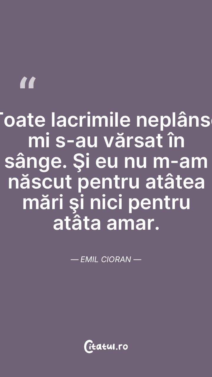 Toate lacrimile neplânse mi s-au vărsat în sânge. Şi eu nu m-am născut pentru atâtea mări şi nici pentru atâta amar. Emil Cioran