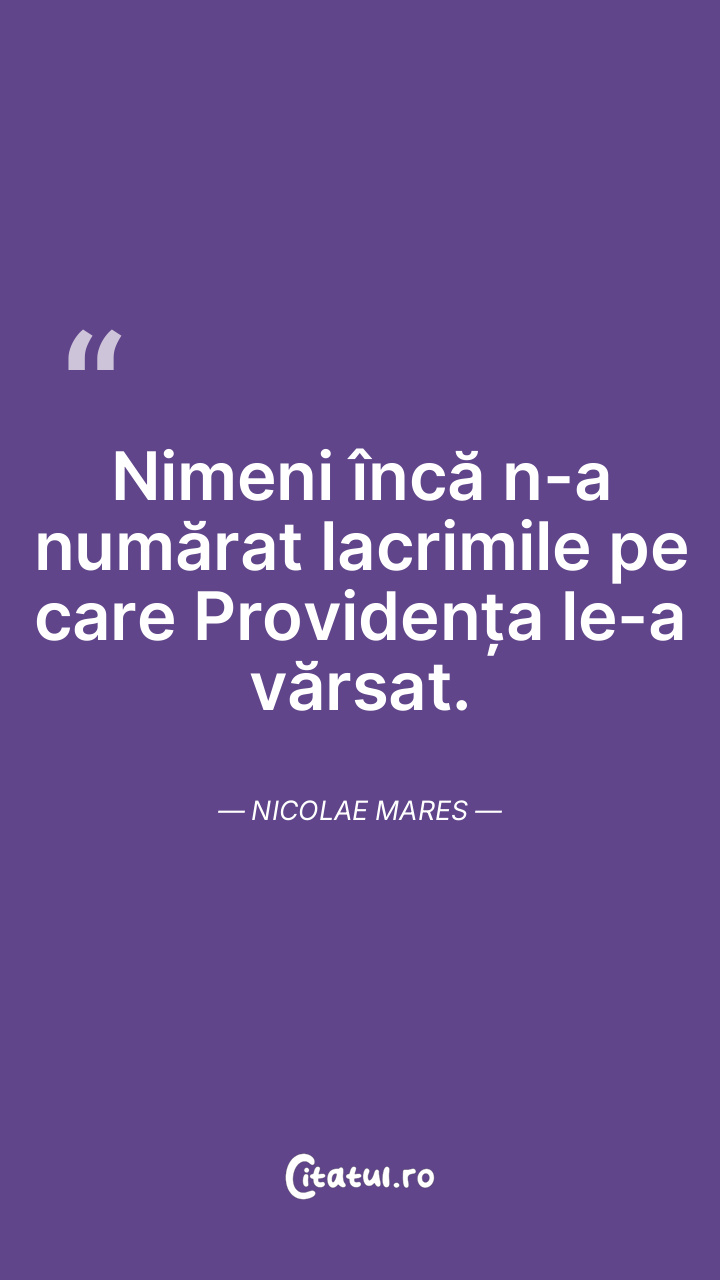 Nimeni încă n-a numărat lacrimile pe care Providența le-a vărsat. Nicolae Mares