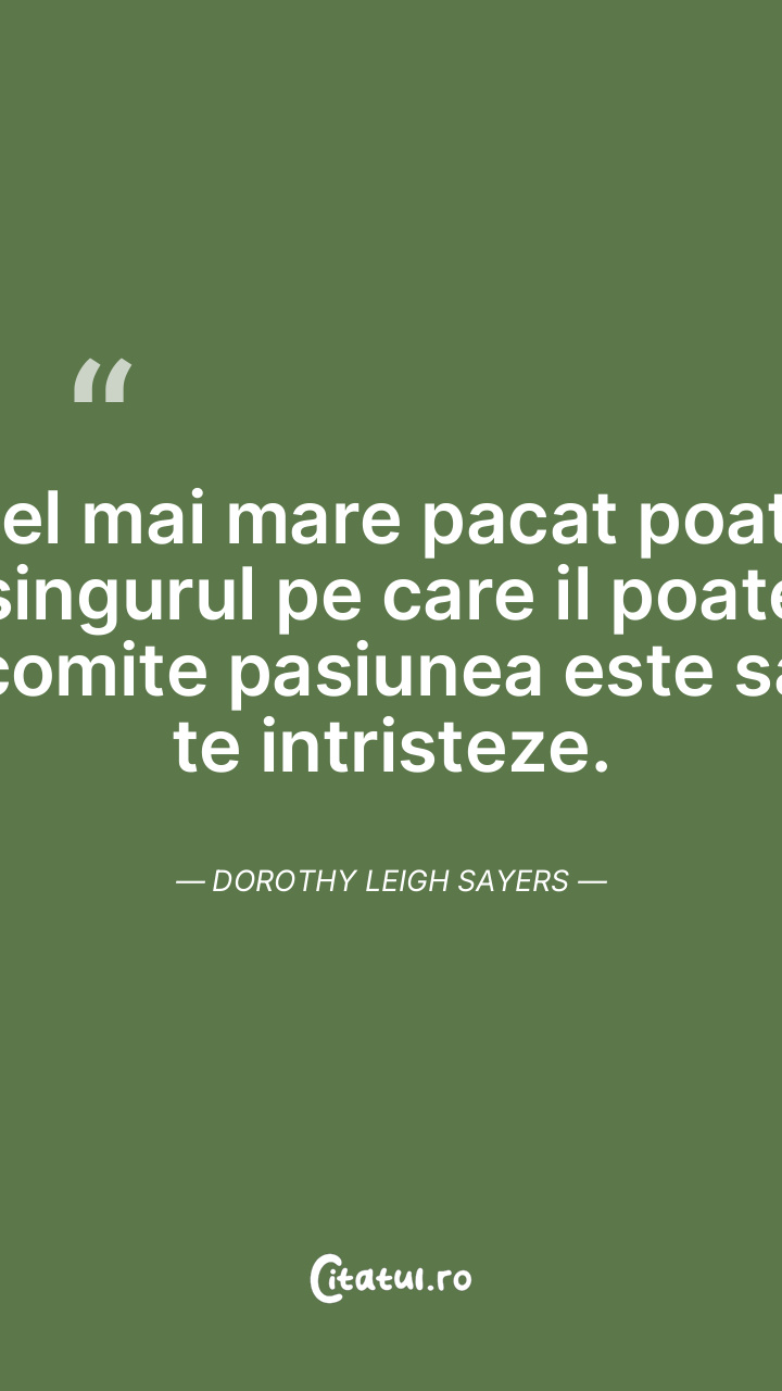 Cel mai mare pacat poate singurul pe care il poate comite pasiunea este sa te intristeze. Dorothy Leigh Sayers