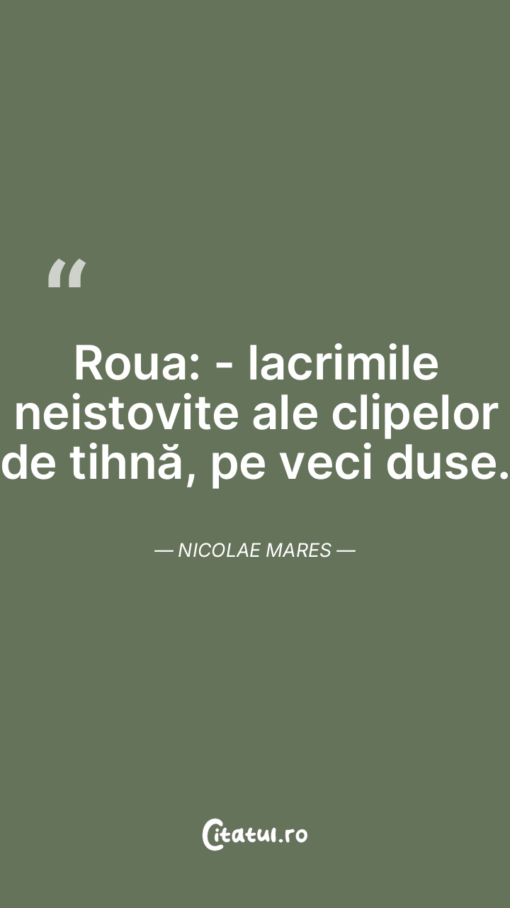 Roua: - lacrimile neistovite ale clipelor de tihnă, pe veci duse. Nicolae Mares