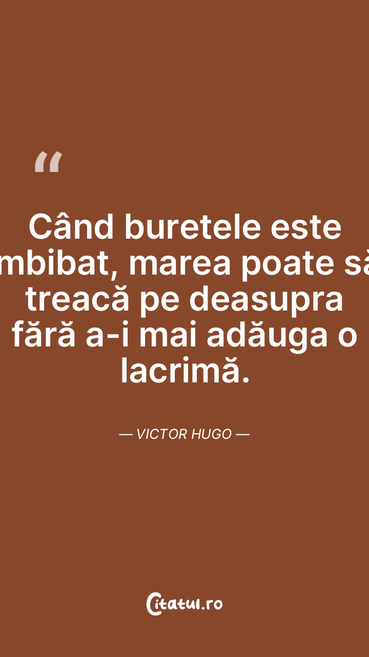 Când buretele este îmbibat, marea poate să treacă pe deasupra fără a-i mai adăuga o lacrimă. Victor Hugo