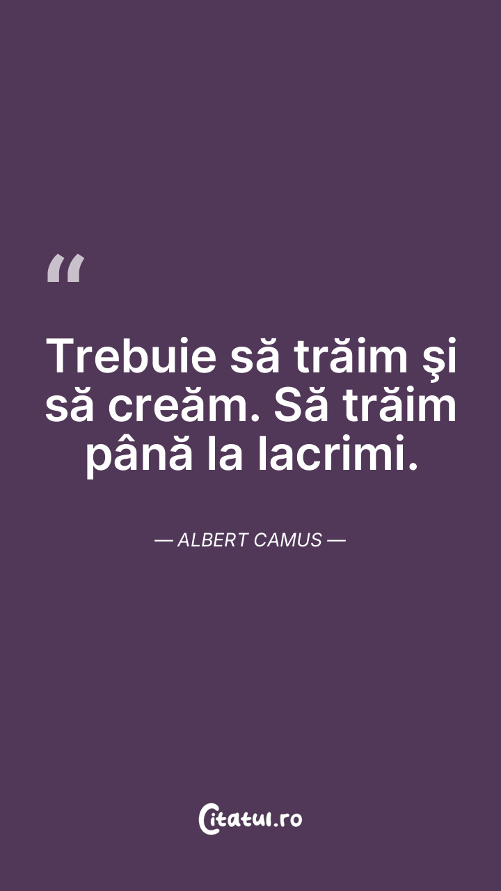 Trebuie să trăim şi să creăm. Să trăim până la lacrimi. Albert Camus