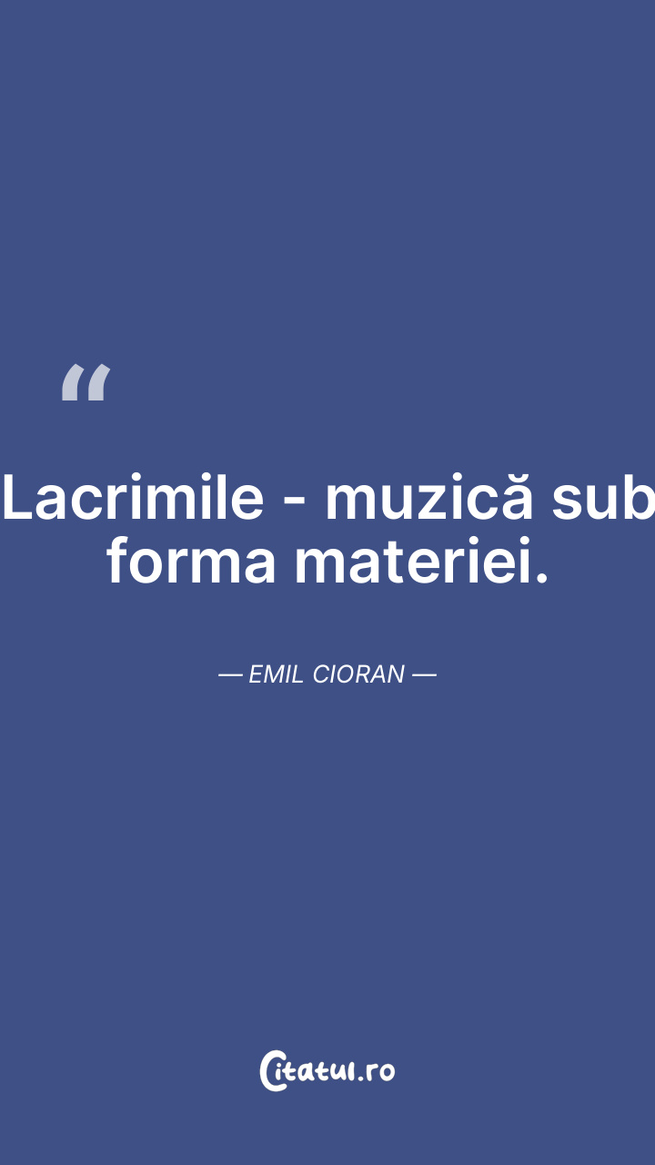 Lacrimile - muzică sub forma materiei. Emil Cioran...