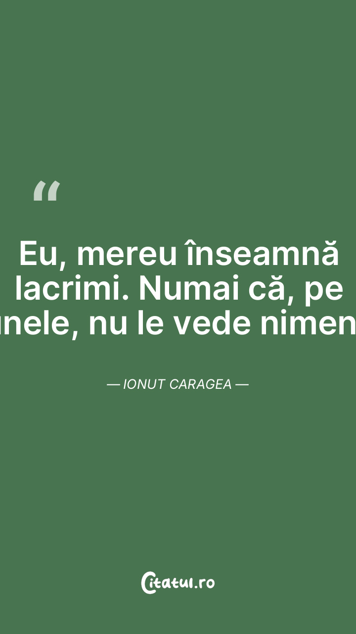 Eu, mereu înseamnă lacrimi. Numai că, pe unele, nu le vede nimeni. Ionut Caragea